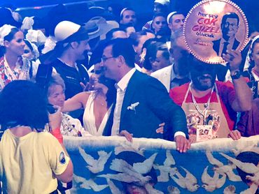 A message on Turkey's founder Mustafa Kemal Ataturk during the Buyukcekmece festival as Michal is host.